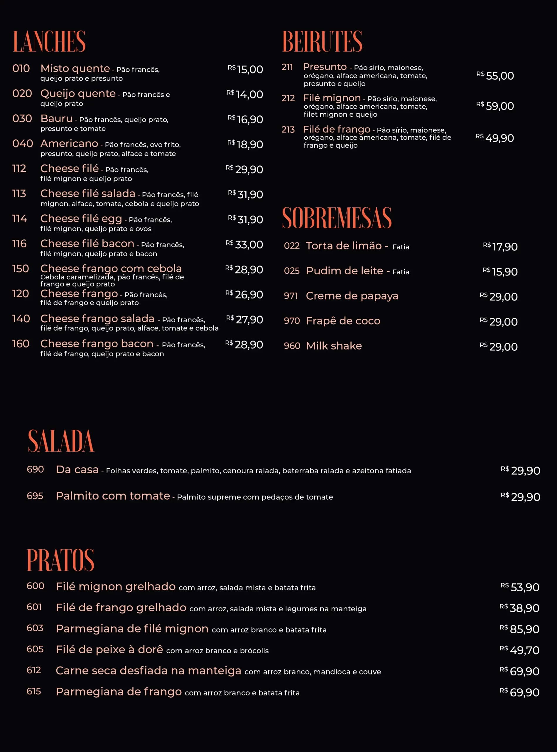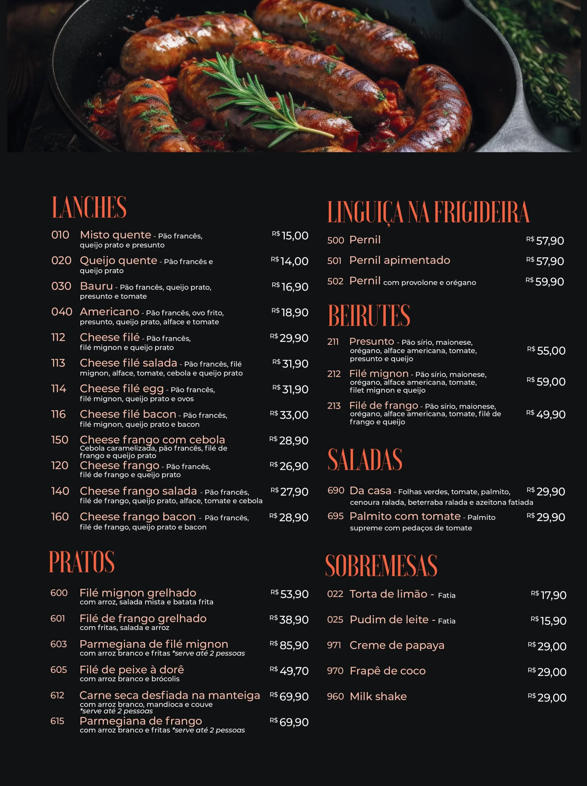 confira nosso cardápio